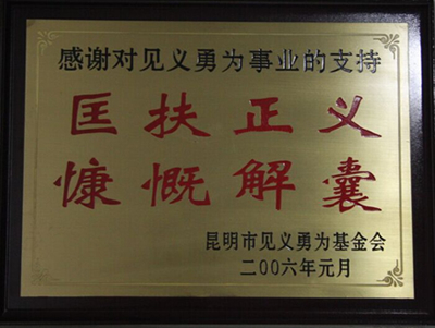 2006年昆明市見義勇為基金會頒發(fā)“匡扶正義 慷慨解囊”獎牌