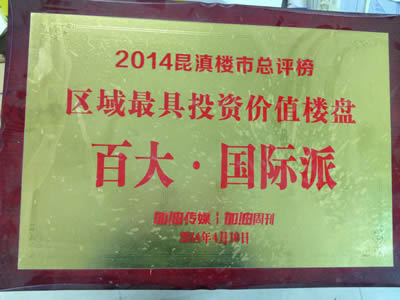 百大•國際派榮獲2014昆滇樓市總評榜區(qū)域最具投資樓盤